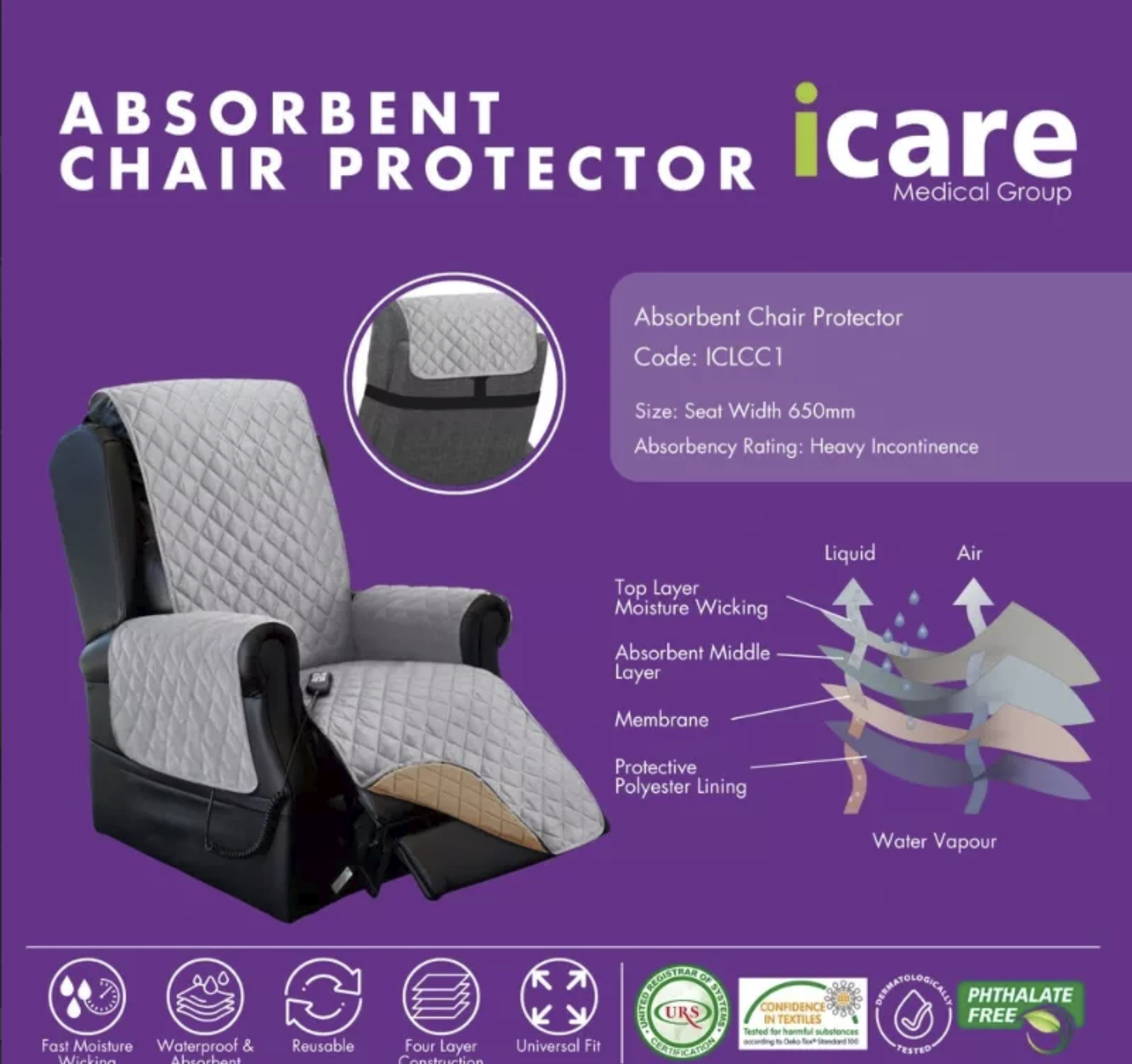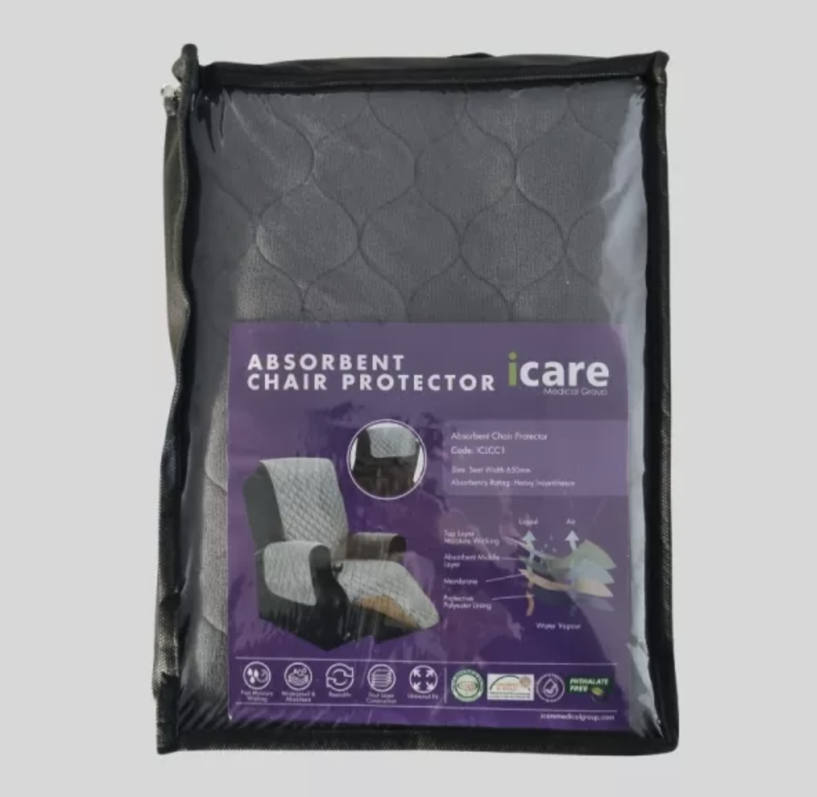 Absorbent seat pads offering four-layer protection, the Icare reusable chair protector is comprised of a waterproof bottom layer to avoid leakage, an ultra-dense middle layer, and a top layer that ensures comfort while sitting.