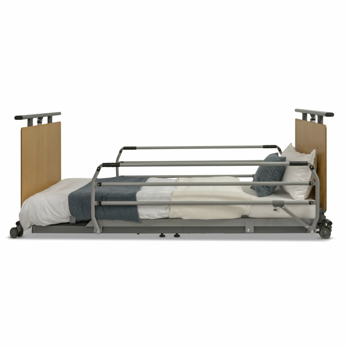 Compatitble with Gravitate G5 Care Bed Provides the user support, stability and roll out protection. Charcoal colour, slip on attach system with three rails for maximum safety. Width 1100mm Height above mattress platform 430mm Space between rails 100mm Max user weight 200kg (static load maximum 250 Newtons) Download Image Library