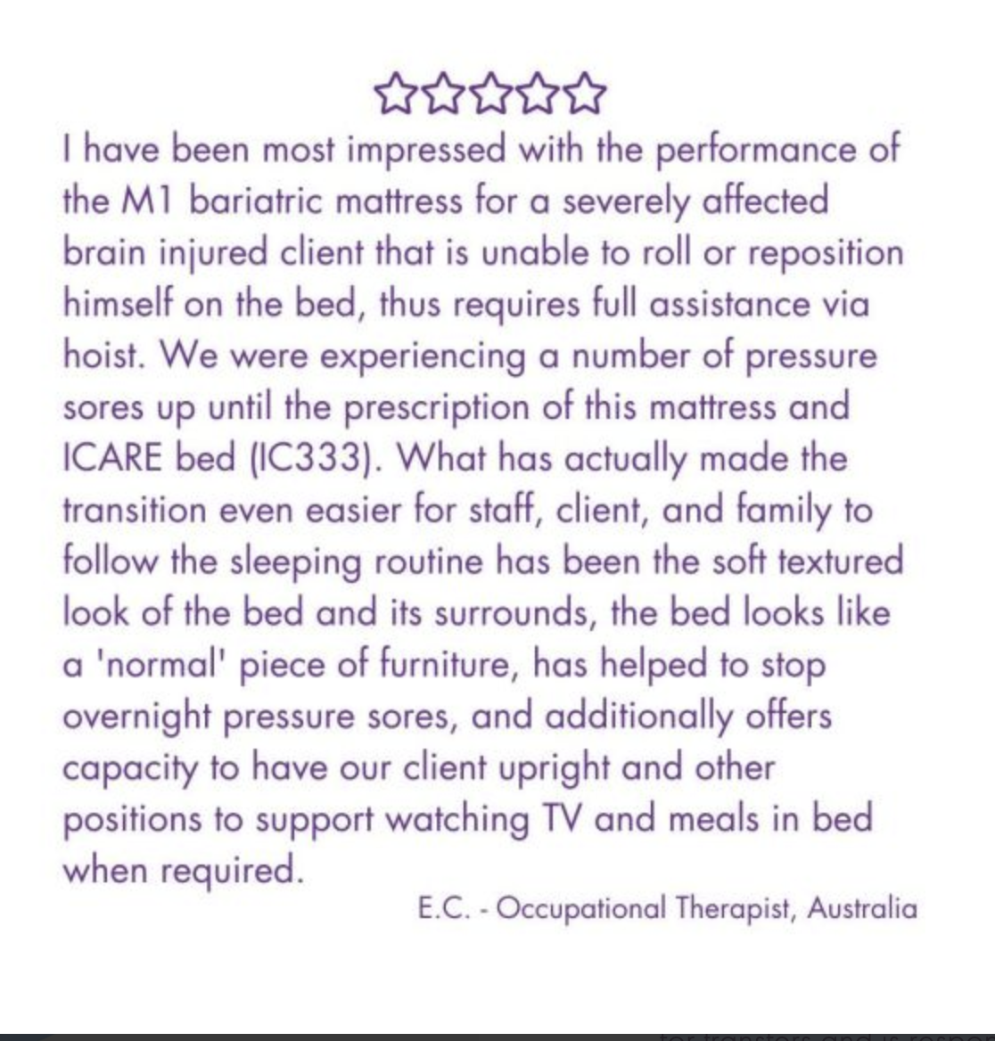Suitable for Bariatric Users Compatible with Icare Homecare Beds, this mattress can support user weight of up to 300kg.