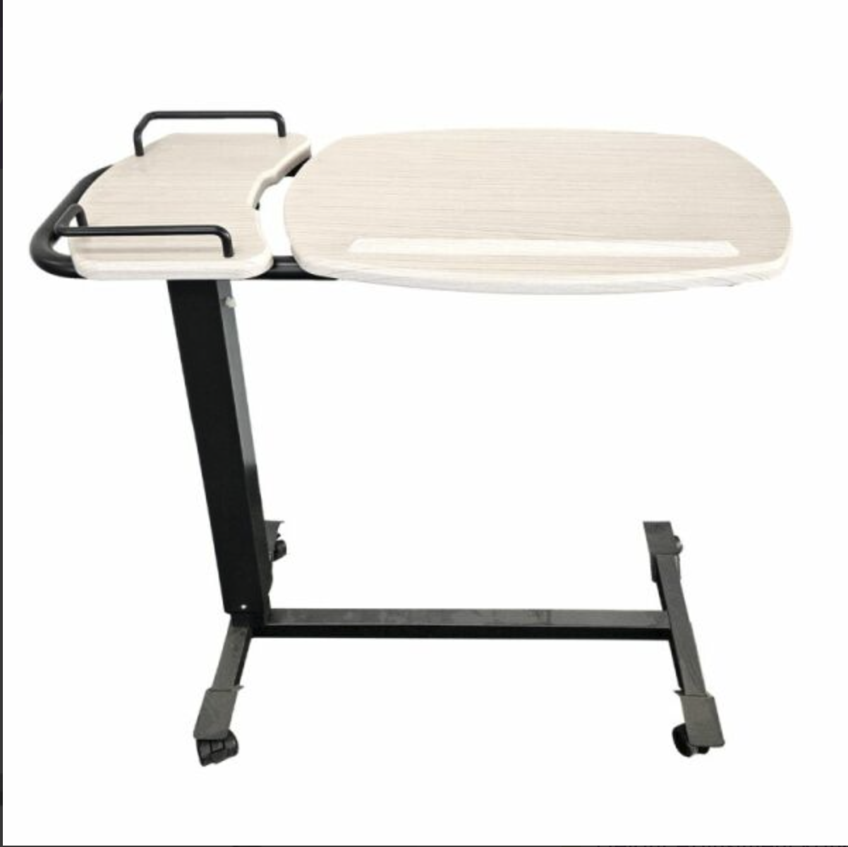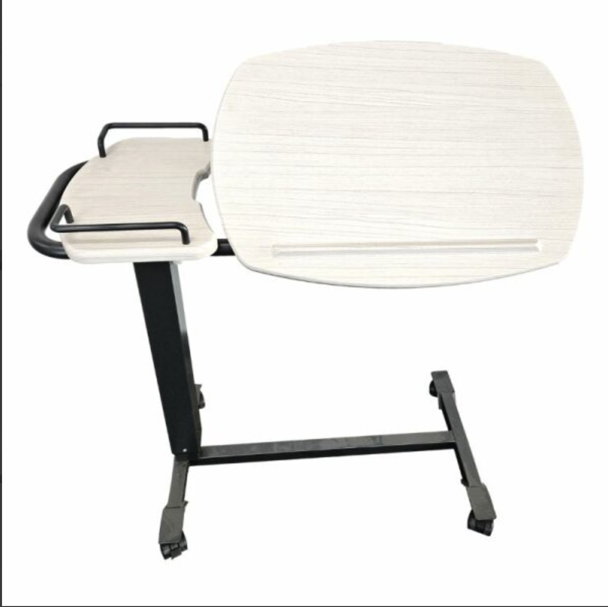 The Icare Over Bed Table C Shape Base, fits easier over a chair and can be used with other homecare beds. Easy care wipe down split table top, providing large tilting workspace and separate ‘side table’ all in one. The tilting table top is reversible.